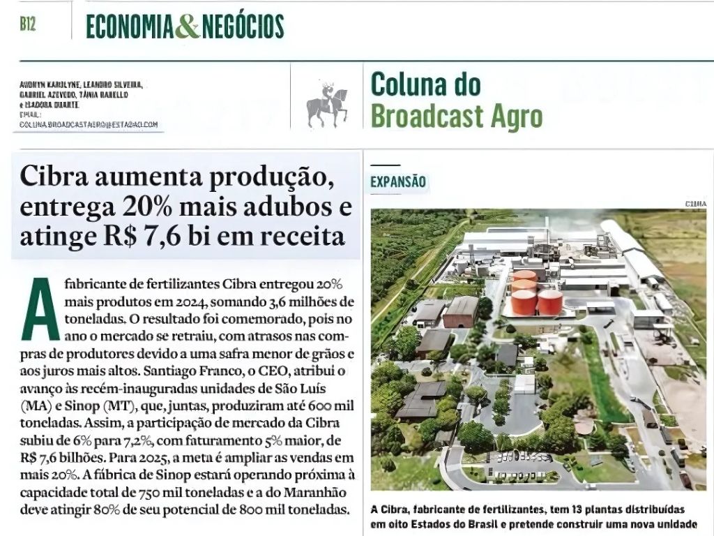 Quer saber mais sobre esse momento da Cibra? Acesse a matéria completa na Coluna do Broadcast Agro do Estadão (exclusiva para assinantes).